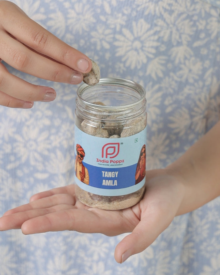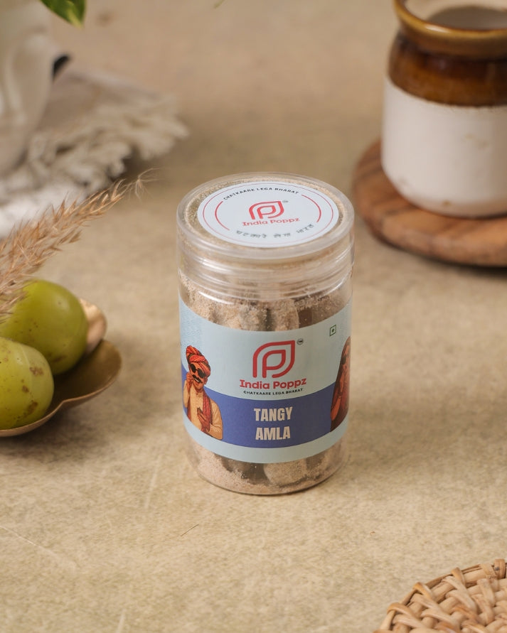 Relish the bold, chatpata flavour of India Poppz Tangy Amla. Made with amla and a lively mix of spices, this tangy treat delivers a perfect balance of sour and spice — ideal for post-meal indulgence or anytime cravings.